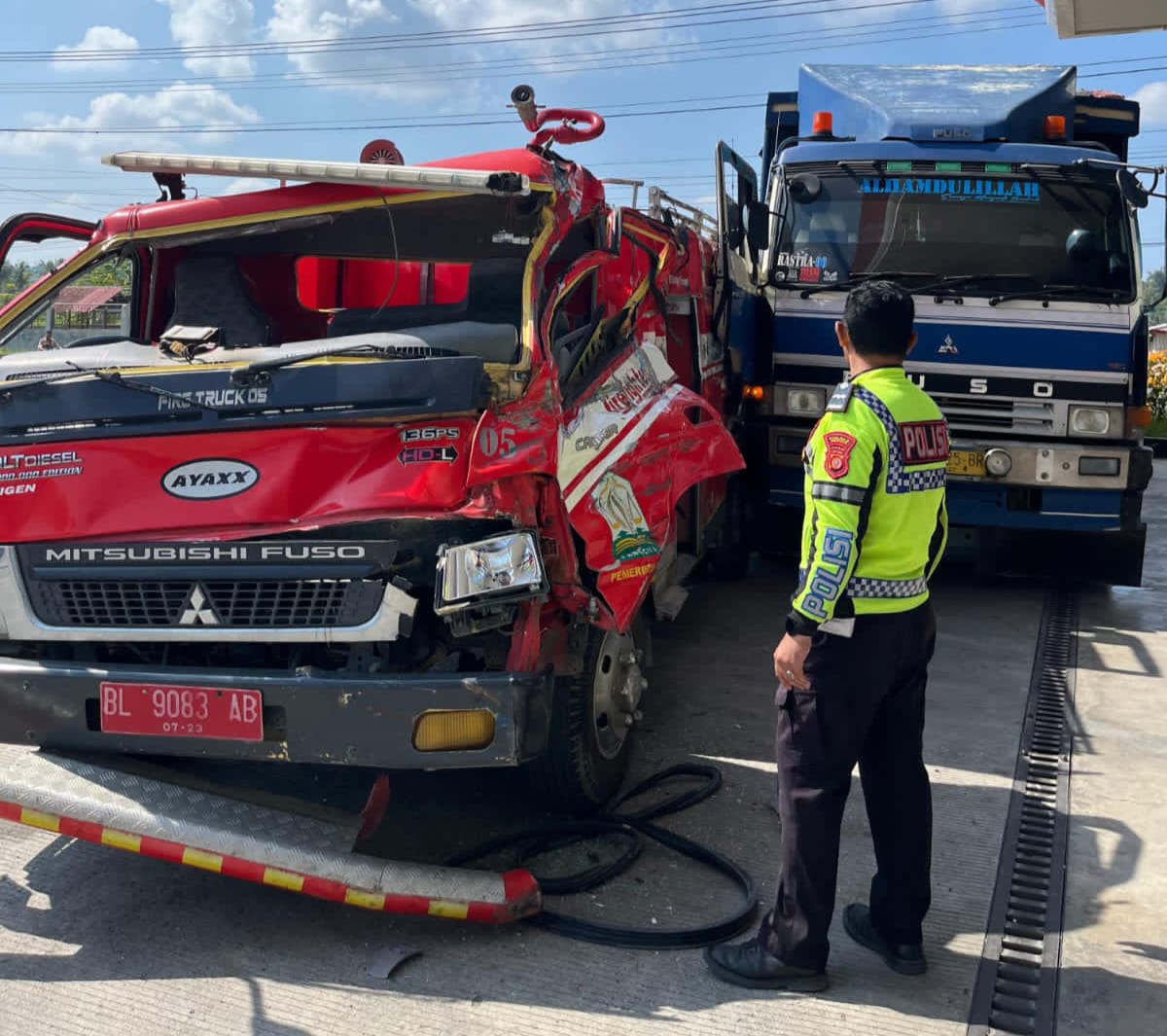 “Sampai di TKP, truk Tronton Mitsubishi Fuso yang dikemudikan Suryadi tiba – tiba belok ke kanan masuk ke SPBU sehingga mobil damkar tidak bisa mengelak dan menabrak bagian samping truk Fuso tersebut,” ujar Kasat Aditya menjawab media ini pada melalui pesan WhatsApp.