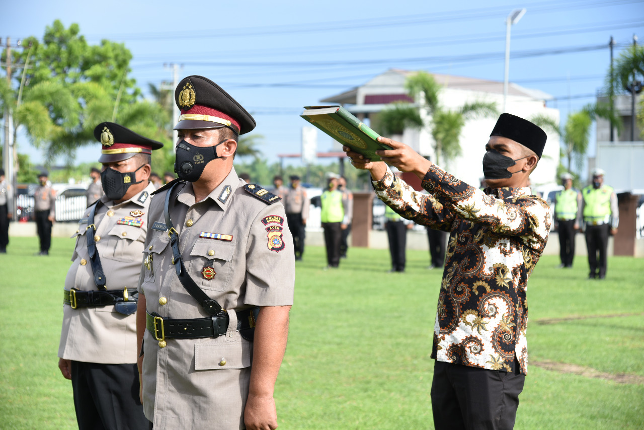 LINTAS NASIONAL – BIREUEN, Kapolres Bireuen, AKBP Mike Hadi Wirapraja S.IK MH memimpin Serah Terima Jabatan (Sertijab) Kapolsek Kota Juang, Senin 29 Oktober 2021, di halaman Mapolres setempat.
