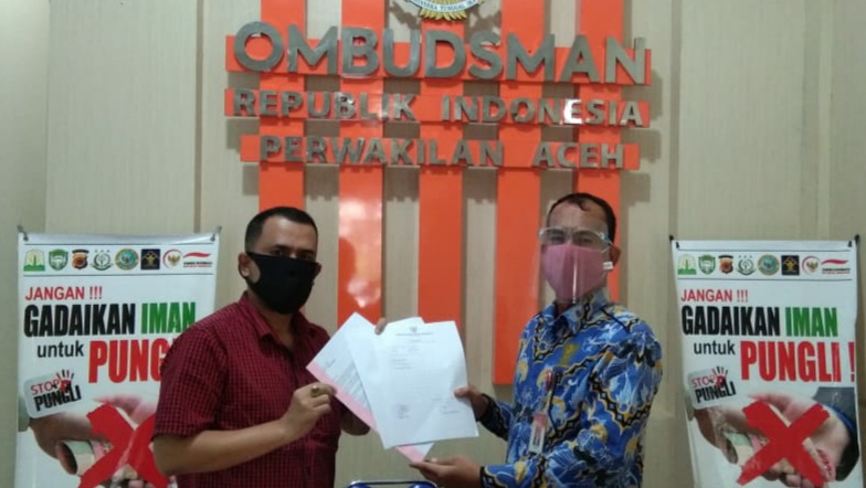 Pelaporan tersebut diwakili oleh Auzir Fahlevi SH dan diterima oleh Asisten PPL Ombudsman Aceh Ilyas Isti setelah sebelumnya berkoordinasi dengan Kepala Ombudsman RI Perwakilan Aceh Dr. Taqwaddin Husin.