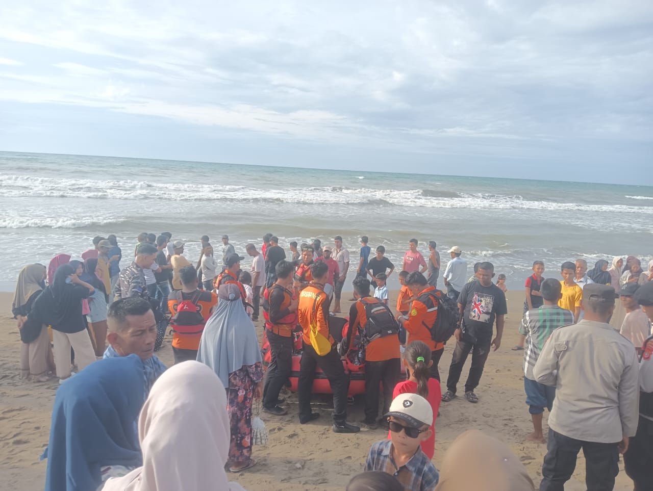 LINTAS NASIONAL – BIREUEN, Satu Keluarga kakak beradik warga Gampong Lhok Awe-Awe Kecamatan Kuala terseret ombak saat mandi di tepi pantai Wisata Gampong Krueng Juli Timu Kecamatan Kuala Kabupaten Bireuen pada Minggu 28 September 2025.
