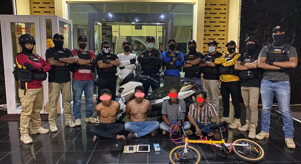LINTAS NASIONAL – BANDA ACEH, Aparat Kepolisian Sektor (Polsek) Kuta Alam yang didukung Tim Rimung Satreskrim Polresta Banda Aceh, pada Selasa 4 Mei 2021 dini hari, menangkap enam orang komplotan pelaku pencurian spesialis di rumah kosong, di kawasan Jalan Mujahidin Gampong Lambaro Skep, Kuta Alam, Banda Aceh.