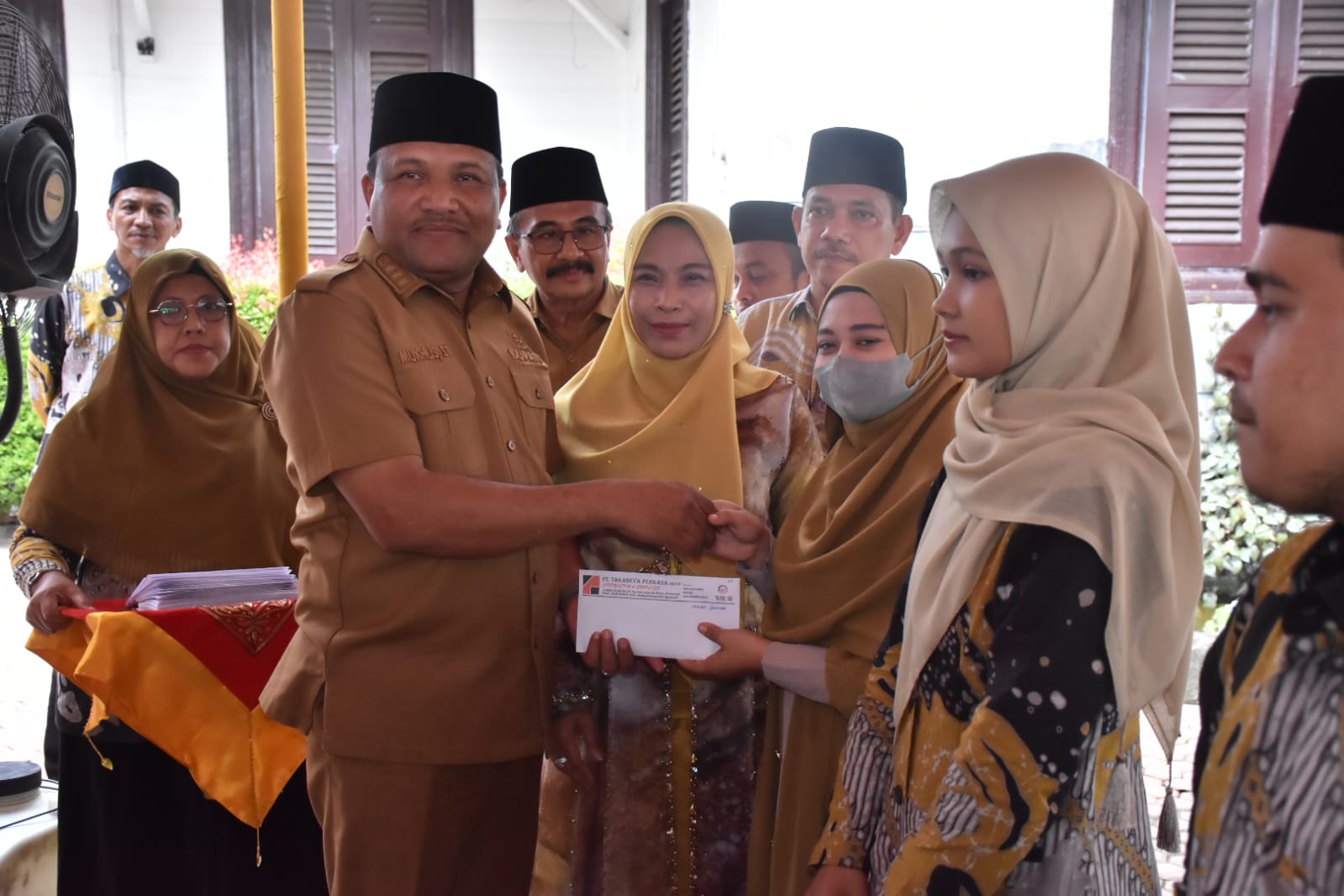 LINTAS NASIONAL – BIREUEN, Bupati Bireuen H. Mukhlis ST menyerahkan hadiah berupa bonus kepada peserta yang mewakili Kabupaten Bireuen pada Musabaqah Tilawatil Qur’an (MTQ) tingkat Provinsi Aceh ke XXXVII yang berlangsung di Kabupaten Pidie Jaya.